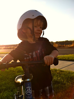 A couple pictures from today. Abby took off on my bike for awhile, and the boys and I hung out on the lawn.